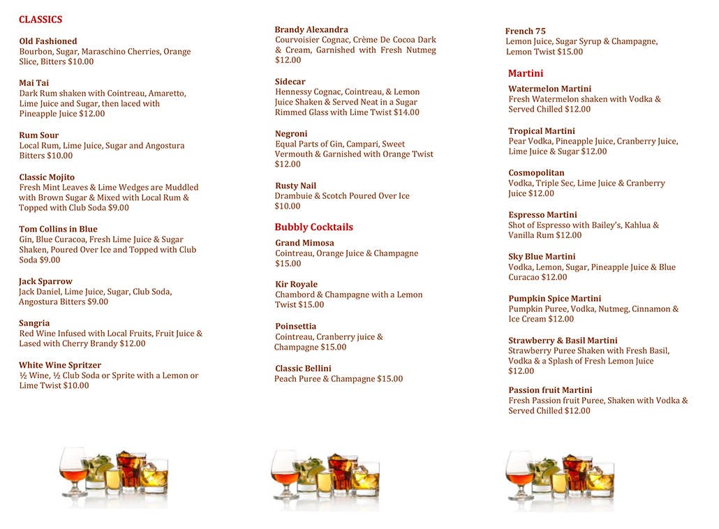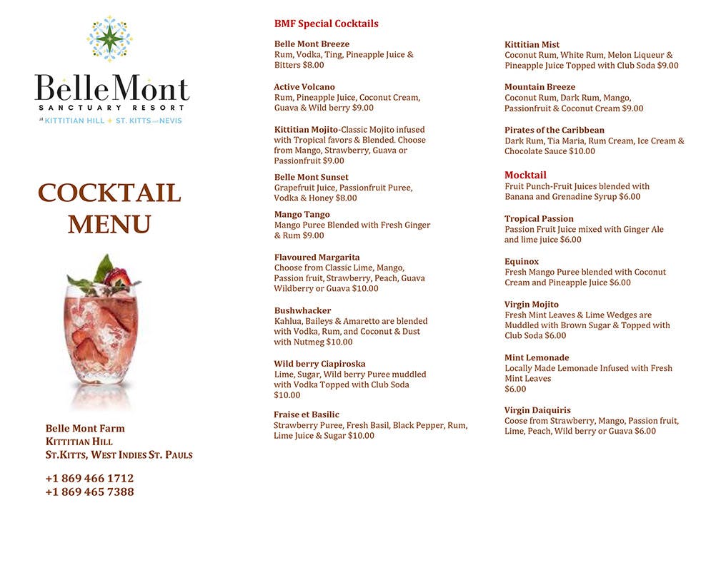 Arthurs Menu | Breakfast Menu | Pool Bar Menu | The Kitchen Menu | Arthurs Cocktail Menu | BMF Cocktail Menu | Dessert Menu