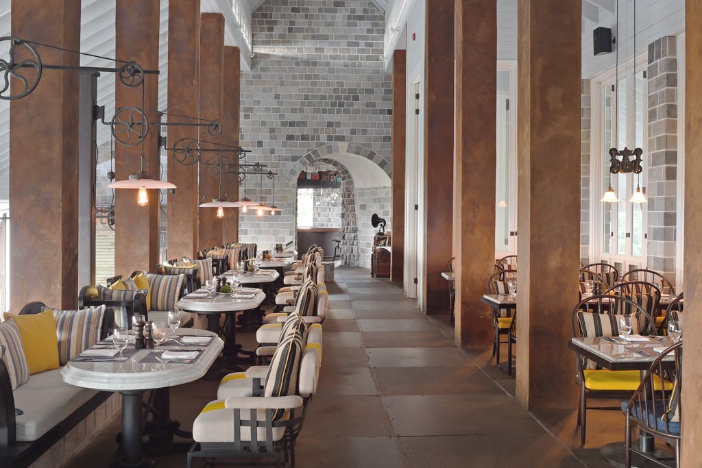 Our stunning main restaurant takes a historical cue from the sugar industry, when St. Kitts exports were considered the best of the Caribbean. It is set up in two levels with five distinctive spaces: the Upper Level where The Mill Bar is also located, The Mountain Terrace, the lounge, the lower level and the outdoor terrace we call The Lookout. In addition, we have The Chef's Table, where tastings and pairing dinners are intimately celebrated.